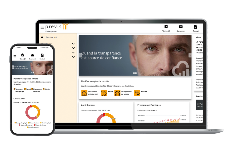 Du côté des assuré-e-s également, le portail en ligne suscite des réactions favorables. Pourtant, l’appli utilisée avant le lancement de PrevisConnect était appréciée, cela ne fait aucun doute. «Le nouveau portail directement intégré au logiciel de gestion propose cependant des fonctionnalités quasi-identiques, tout en étant plus efficient que l’application dans son exploitation et son développement», précise Stefan Ernst, avant d’avancer un autre argument: «Grâce à PrevisConnect, nous pouvons jouer à fond la carte de la personnalisation et répondre encore mieux aux besoins de nos assuré-e-s». Le nouveau portail en ligne permet d’avoir une vue d’ensemble claire de sa propre prévoyance, de simuler différents scénarios et de faciliter la communication avec la caisse de pension. Bien entendu, celles et ceux qui ont besoin de conseils peuvent continuer à en bénéficier. Plus de 60% des assuré e s utilisent d’ores et déjà PrevisConnect. Les personnes qui ne se sont pas encore inscrites peuvent le faire très simplement et rapidement – elles ne seront pas déçues.