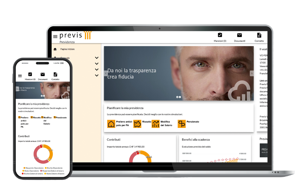 Il portale online ha avuto un riscontro positivo anche da parte delle persone assicurate, nonostante anche la precedente app per le persone assicurate, sostituita da PrevisConnect, fosse molto apprezzata. «Il nuovo portale, direttamente integrato nel sistema di gestione, offre funzioni quasi identiche, ma è più efficiente dal punto di vista del funzionamento e dell’ulteriore sviluppo rispetto alla soluzione app», spiega Stefan Ernst. E aggiunge: «Grazie a PrevisConnect, possiamo rivolgerci alle persone assicurate in modo ancora più personalizzato e basato sulle esigenze». Il nuovo portale online consente una chiara panoramica della propria situazione previdenziale, offre simulazioni per diversi scenari e semplifica la comunicazione con la cassa pensioni. Chi ha bisogno di consulenza può comunque continuare a richiederla. Oltre il 60 per cento delle persone assicurate utilizza già PrevisConnect. Chi non si è ancora registrato può farlo in modo semplice e veloce: ne vale la pena.